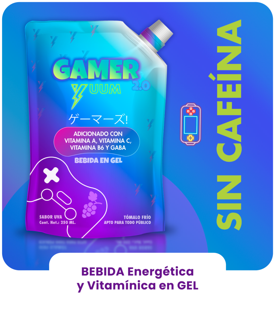 BEBIDA ENERGÉTICA Y VITAMÍNICA EN GEL FÓRMULA PARA GAMERS BOOST GAMER Con las cantidades de vitaminas y minerales necesarias para dar el 100% en la partida. Acondicionado con: Vitamina B, B2, B6, B12, Vitamina C,Vitamina D, Vitamina E, Vitamina A,ZINC, Ácido Fólico, GABA. ¡Pruébalo frío! PASTEURIZADO - CON TAPÓN DE ROSCA PARA CONSERVARLO POR MÁS TIEMPO Email SUSCRIBIR
